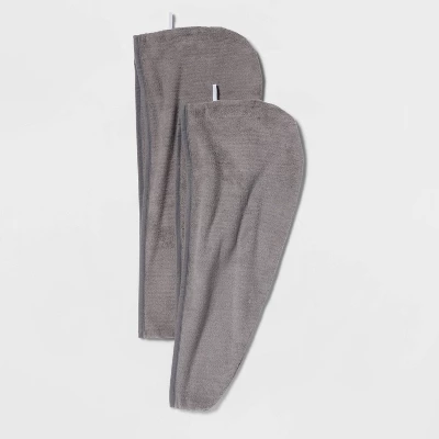 Help your hair dry faster as you get ready for the day with the help of this 2-Pack Hair Wrap Set from Room Essentials™. This set includes two microfiber hair wraps that not only feel soft against your hair, but also help dry off and hold your hair with less rubbing. Plus, they feature a small elastic loop on the top for conveniently wrapping your hair. Plus, with two hair wraps in the pack, you can rotate between them so you always have a dry one to wrap your hair in after showering or swimming.