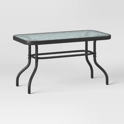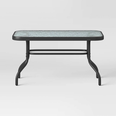 Enjoy spending time in your backyard or on your deck with this 4-Piece Sling Patio Conversation Set from Room Essentials™. This rust- and weather-resistant outdoor furniture set comes with two armchairs and a loveseat with mesh fabric seats and backrests, along with a rectangular coffee table featuring a tempered glass tabletop. The outdoor seating set is made from stainless steel, and all the pieces are supported by a slender black frame, giving it a polished appearance and a coordinated look that will instantly upgrade your outdoor entertaining.