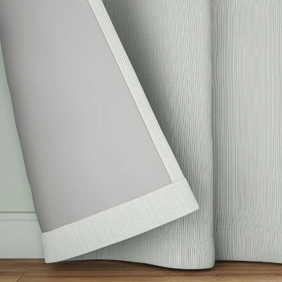 Your little one will sleep soundly without being woken up by the sun with this Blackout Baby Striped Window Curtain Panel from Room Essentials™. Made from 100% recycled polyester, this window curtain panel is designed with striped print in gray and ivory hues. Designed with a rod pocket for easy installation, the curtain panel effectively blocks sunlight from leaking in, and it can be machine washed for easy cleaning.