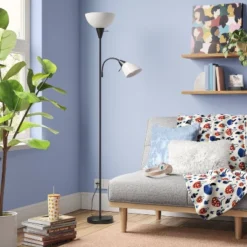 Turned Wood Stick Lamp Brown – Room Essentials™: Modern Accent Table, ETL Listed, No Bulb Included